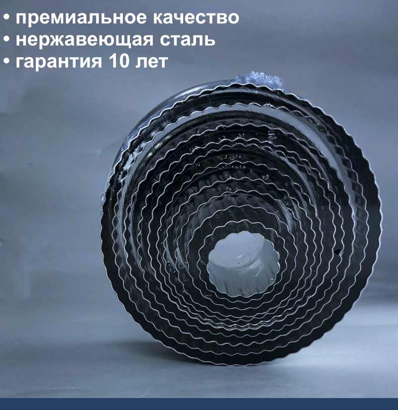 Премиальное качество, нержавеющая сталь, толщина металла 0,6 мм, не гнутся. Это не эконом варинат из жести который согнётся при первом использовании, это надёжные вырубки из нержавеющей стали, гарантия качества 10 лет. Размеры вырубок в наборе: 25; 30; 35; 45; 50; 55; 65; 70; 80; 85; 90 мм