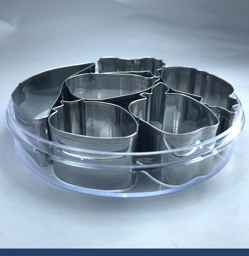 Сверху на фигуре сделан ободок, для предотвращения врезания в руки при надавливании. Упаковка: пластиковая коробка. Изготовлены из нержавеющей стали. Не требуют особого ухода, промойте в тёплой воде с минимальным использованием моющих средств. При бережном отношении набор вырубок простужит вам очень долго.