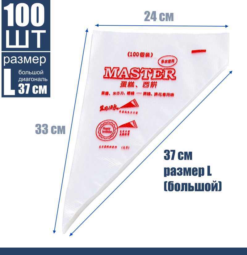 Кондитерские мешки 37 см большой размер (L), одноразовые кулинарные мешки Мастер, упаковка 100 или 300 шт - легко купить в интернет магазине. Бережно упакуем. Быстро доставим ваш заказ по Москве, России и миру. Заказы отправляем из г.Балашиха, Московской области. Скидка на первый заказ и постоянным покупателям 5%. Ищите промокод для скидки на нашем сайте.