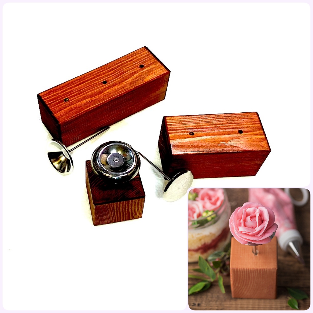 Кубик для кондитерских гвоздиков станет вашим надёжным помощником, вставьте гвоздик с отсаживаемым цветком из крема в отверстие кубика и всё, не беспокойтесь с вашим кремовым бутоном всё будет в порядке. Тем временем вы можете сменить кондитерскую насадку, добавить крем в мешок или отдохнуть, кубик-подставка для кондитерских гвоздиков не подведёт вас.