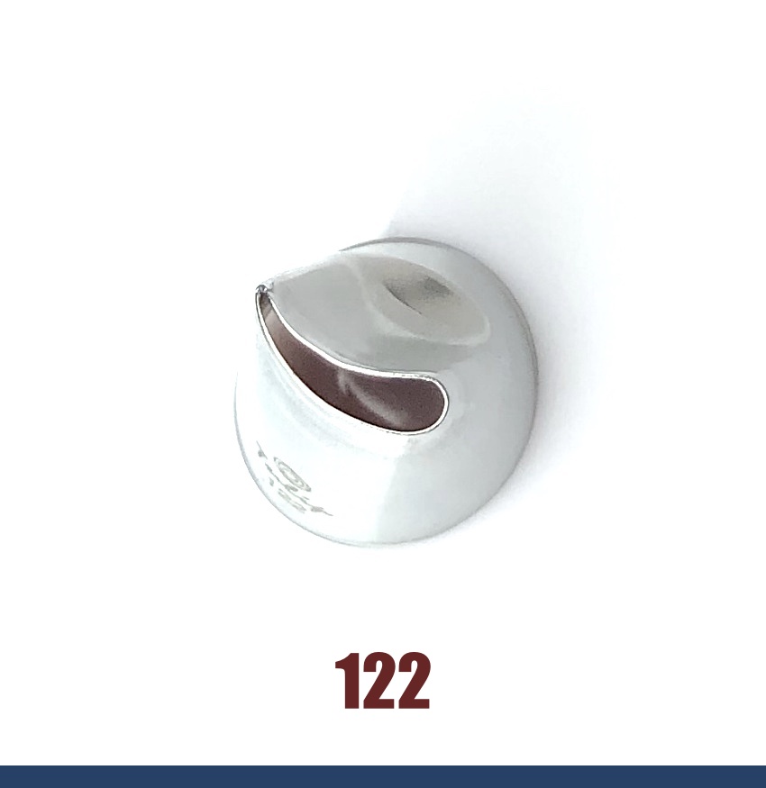 Насадки №120, 121, 122, 123 среднего размера - это изогнутые лепестки. Форма прорези в виде "капельки" у этих насадок она одинакова, отличие в размере.