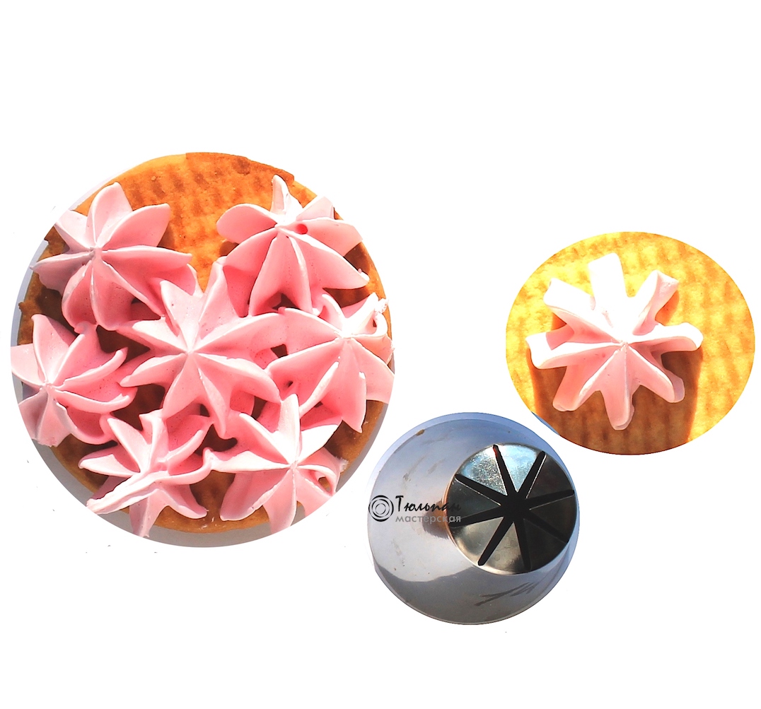 Создаст розу из крема, шапочку для капкейка легко и быстро! Кондитерская насадка №142 имеет шесть лепестков, форма лепестков - прямая.